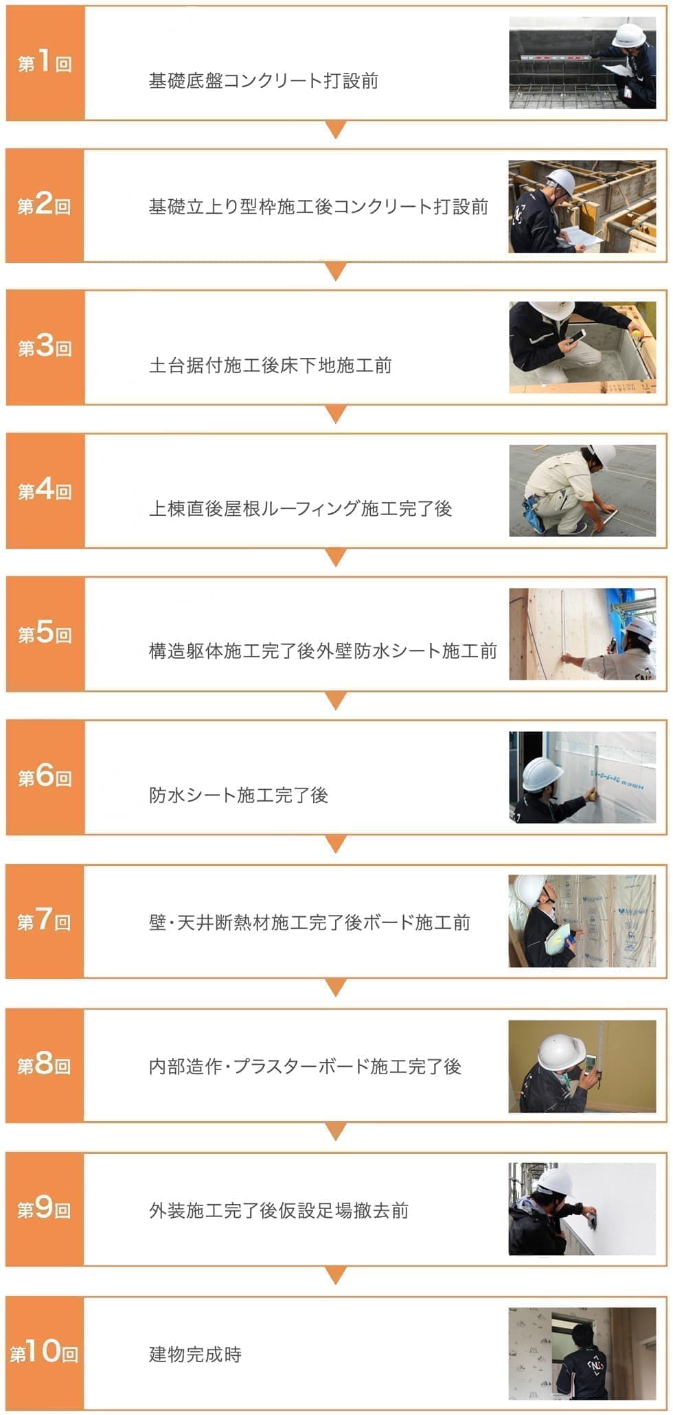 当社はNEXT STAGEの第三者現場品質監査を導入しています。 お施主様からの信頼と安心を担保するため、品質管理が自社で適正に実施されているかどうかを、監査項目書(チェックリスト)に基づきあえて第三者の視点から厳しくチェックしていただいています。